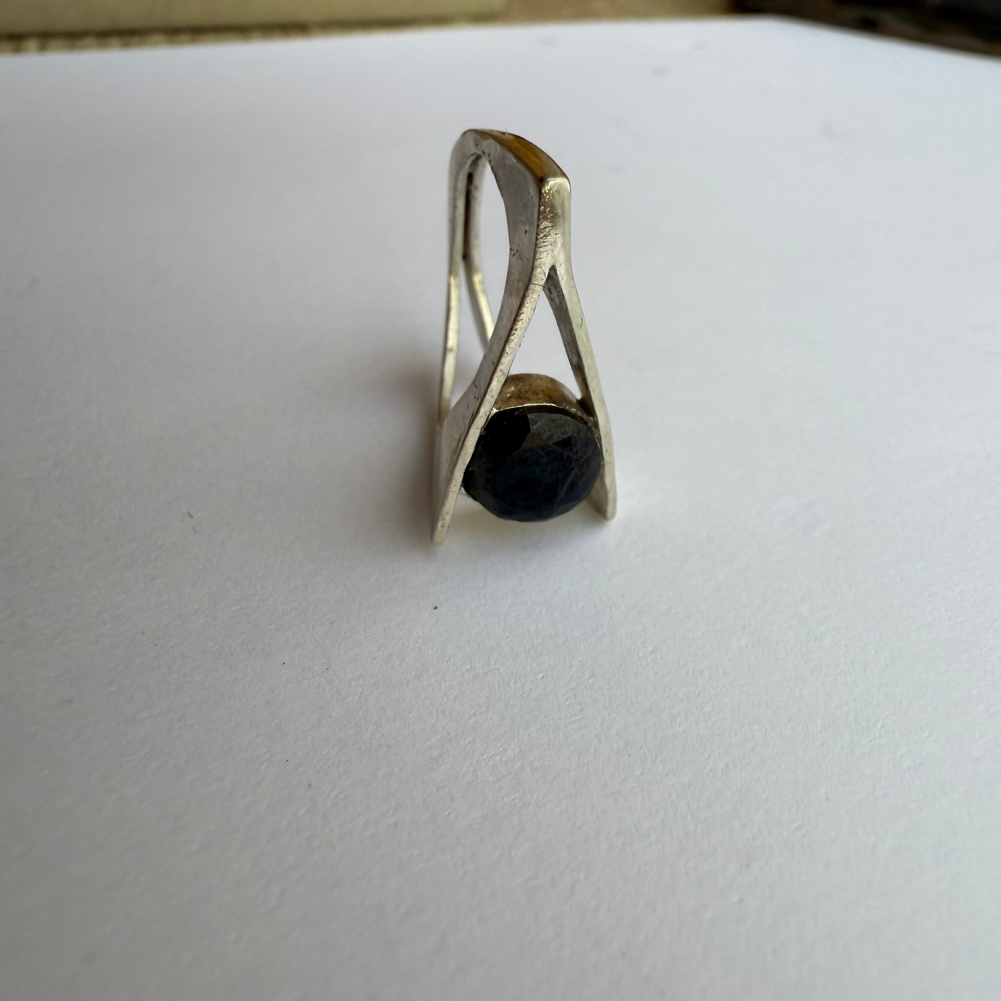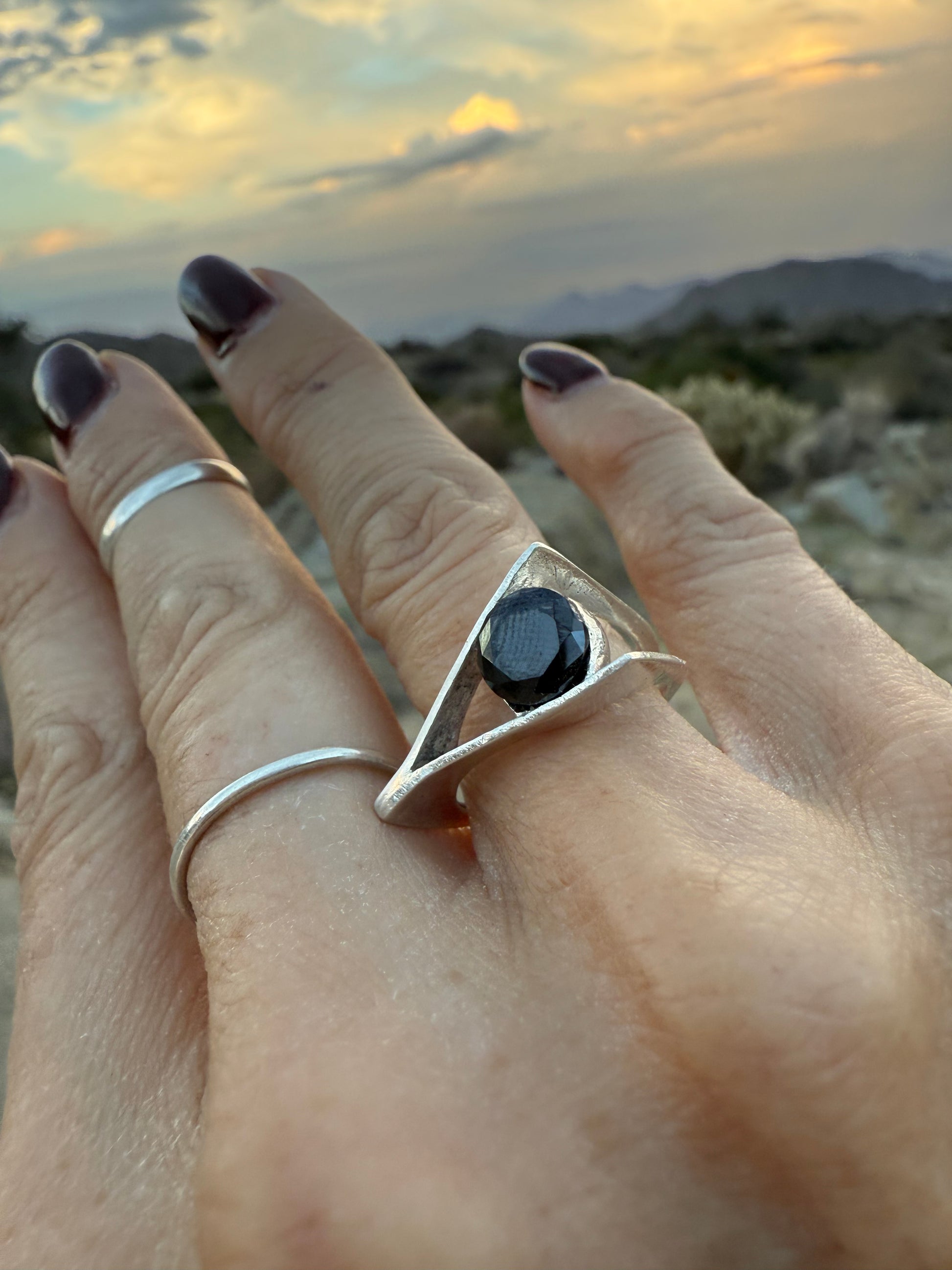 A ring in which the cosmos meets architecture. The triangular shape and dark, onyx stone create a sense of sacred geometry, like a celestial eye or a portal between worlds. Wear it to channel inner vision and openness to the unseen and perfect architecture underlying the cosmos.
