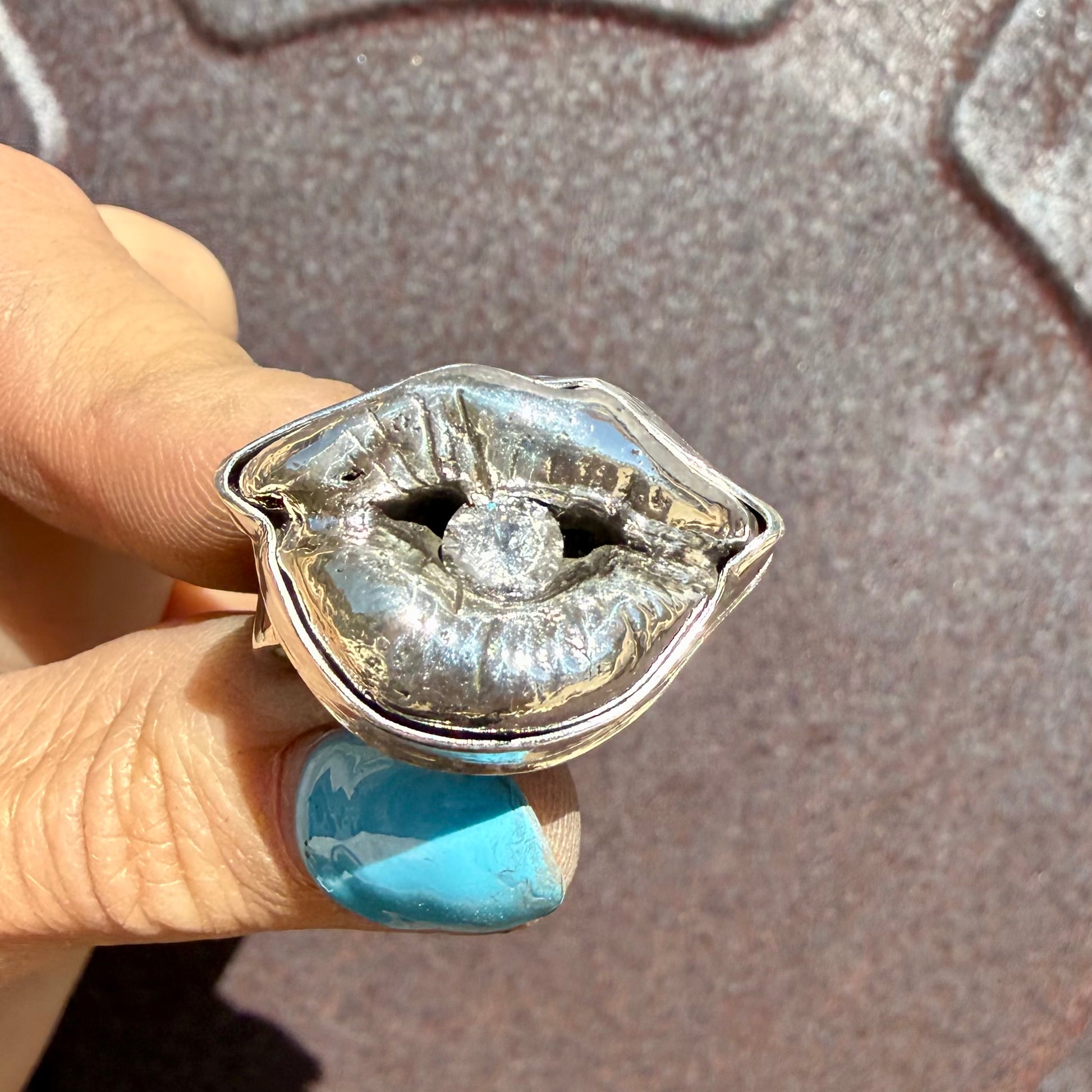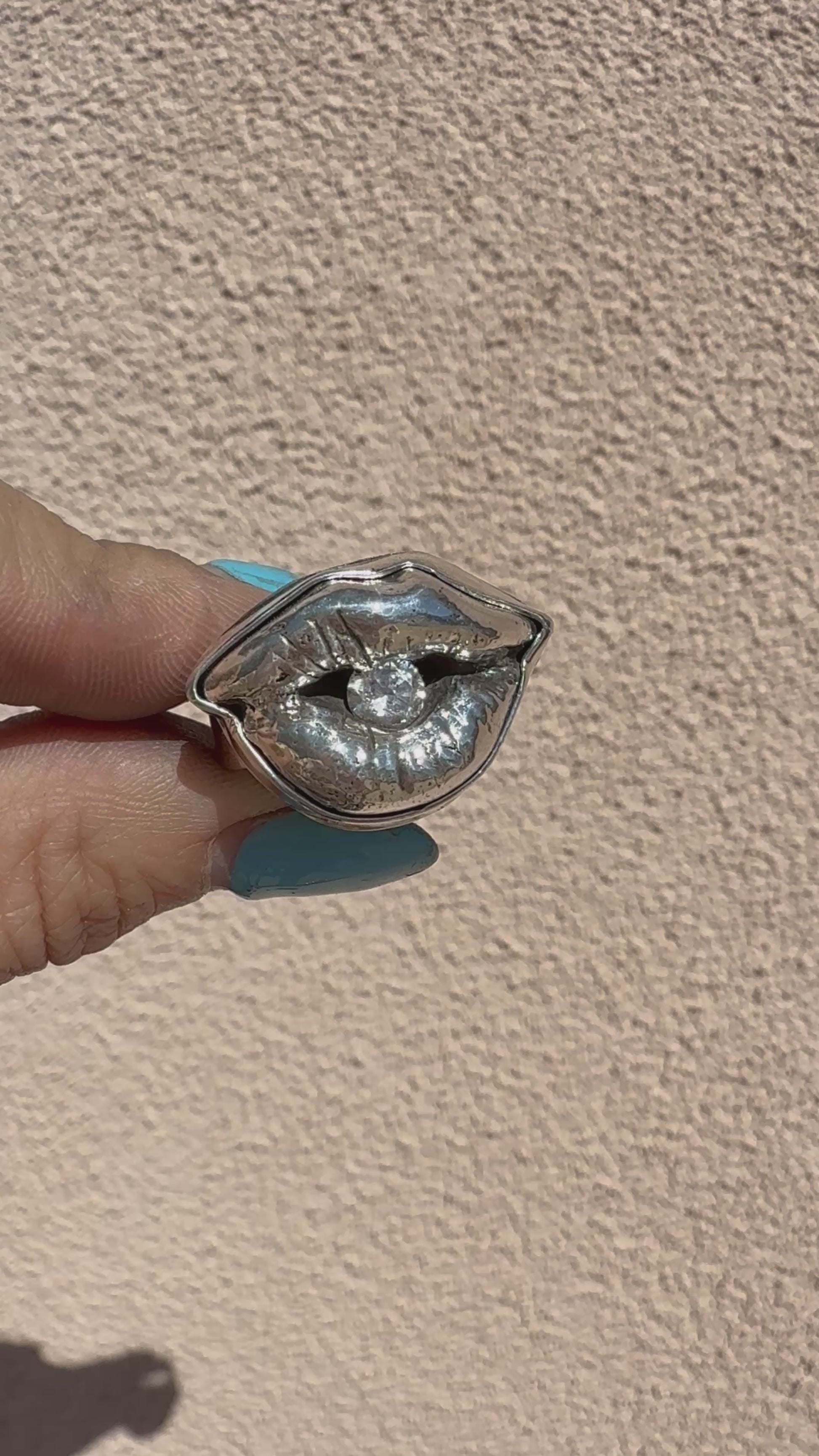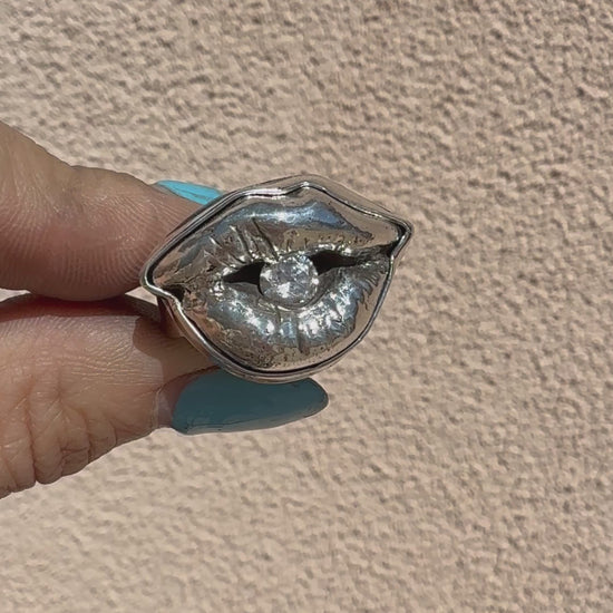 Handmade sculptural ring featuring a cubic zirconia set within a sculpted sterling silver mouth, this one-of-a-kind ring explores themes of voice, restraint, and revelation.