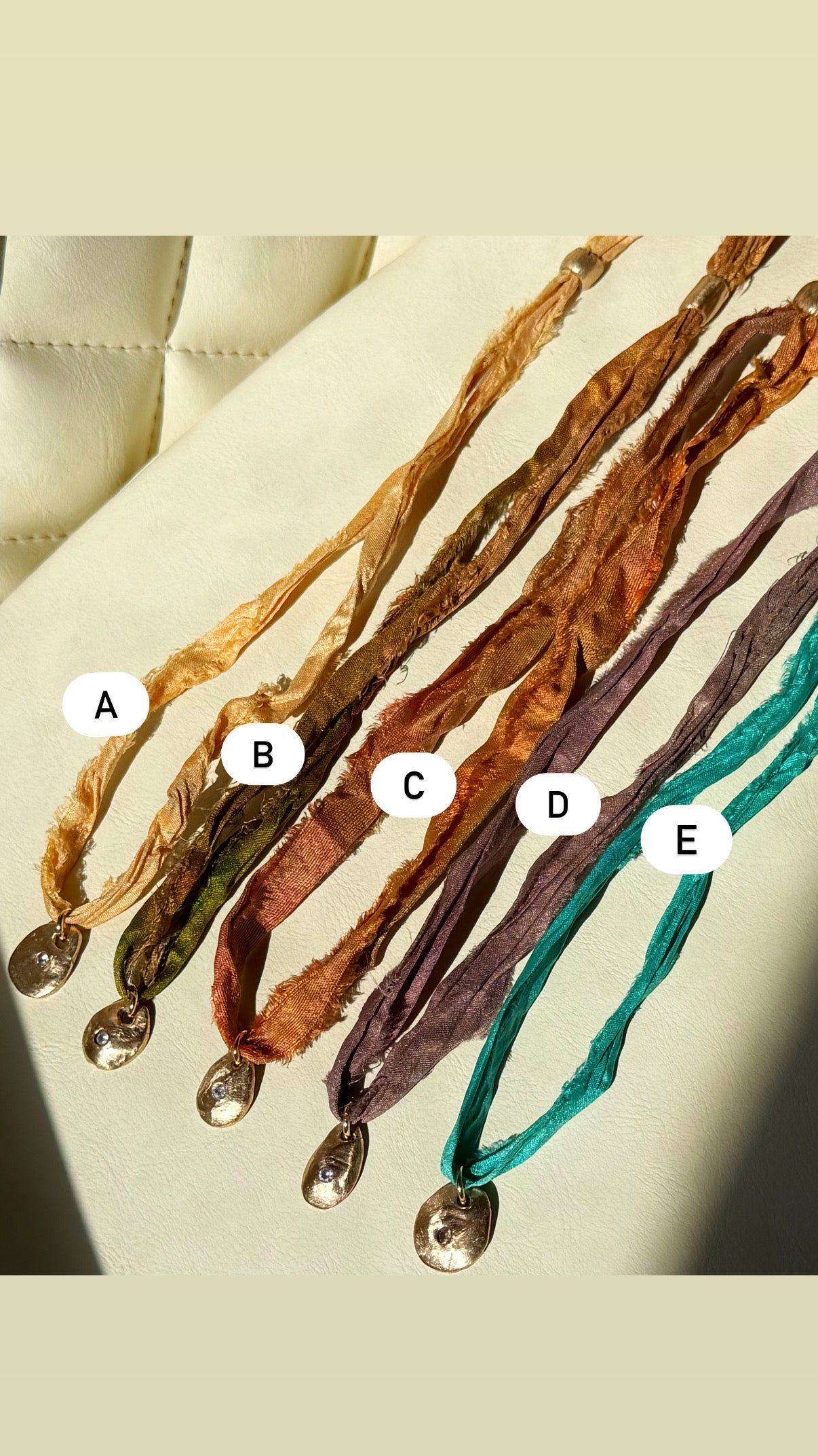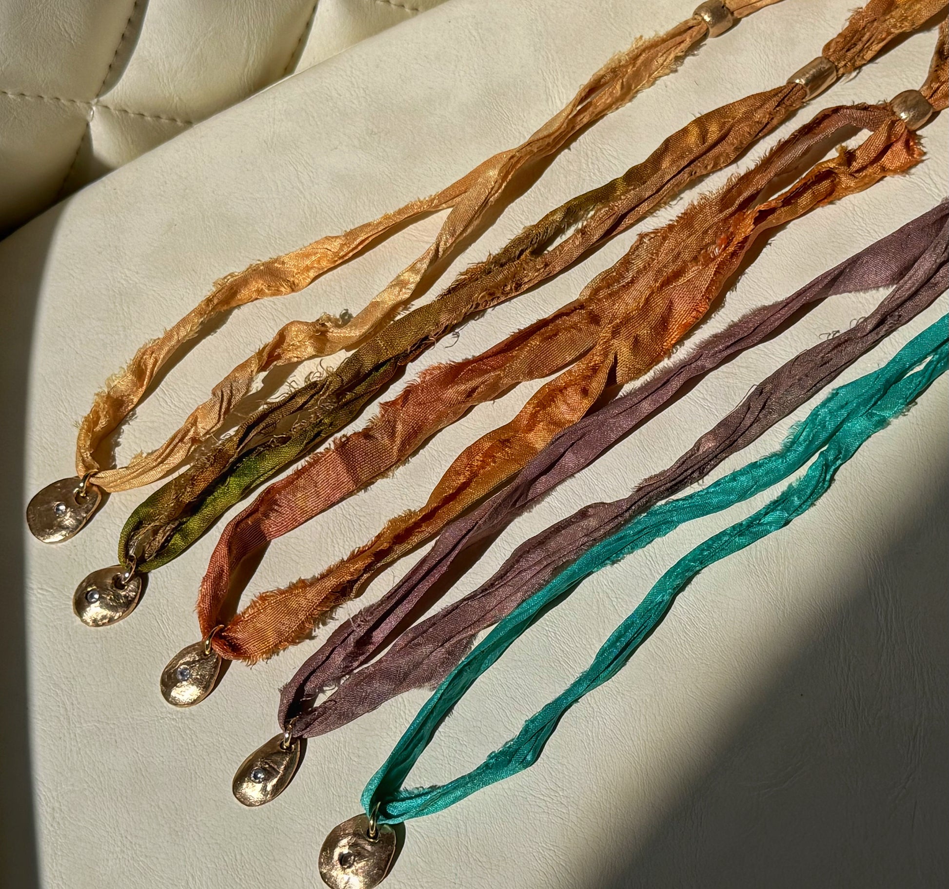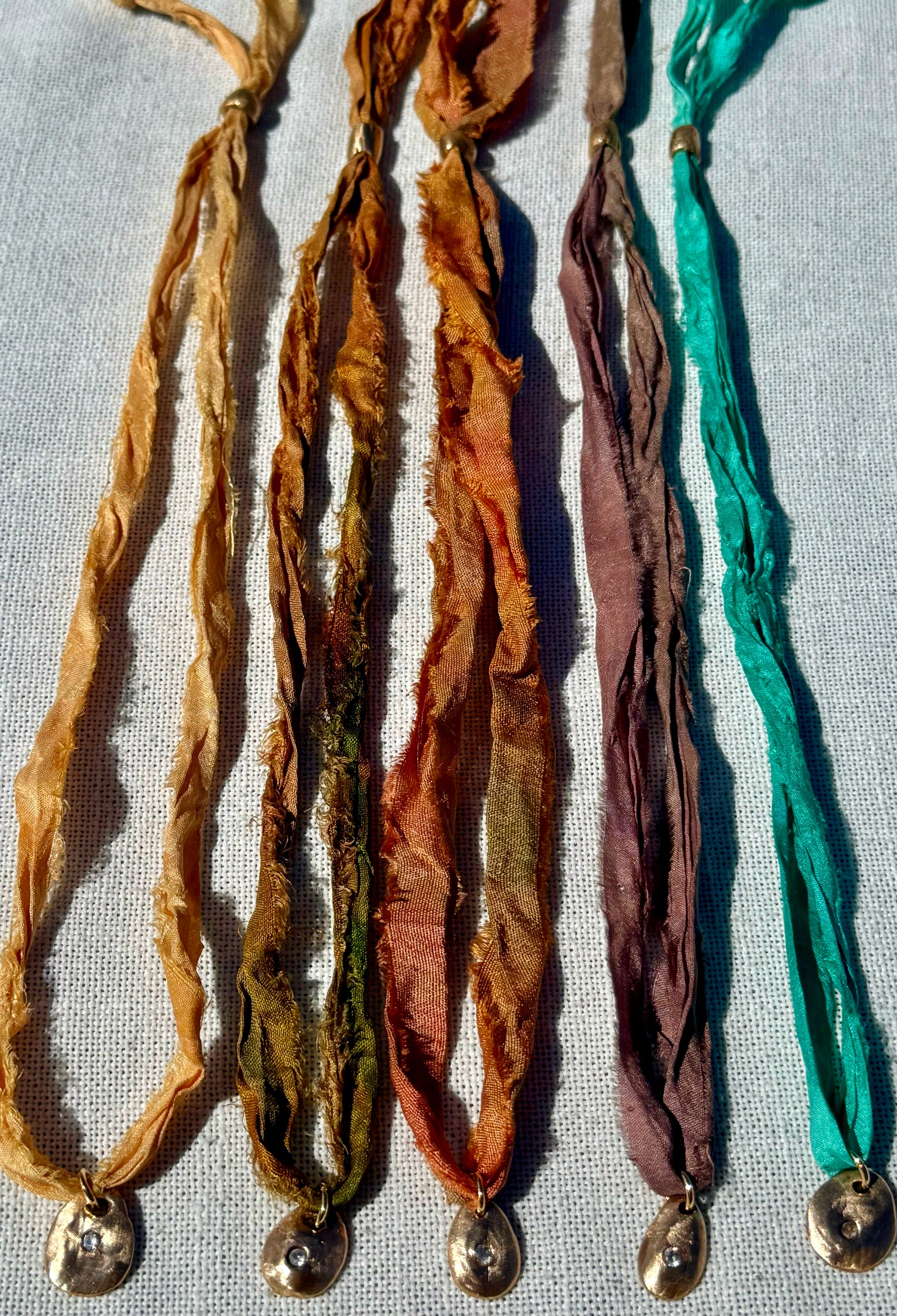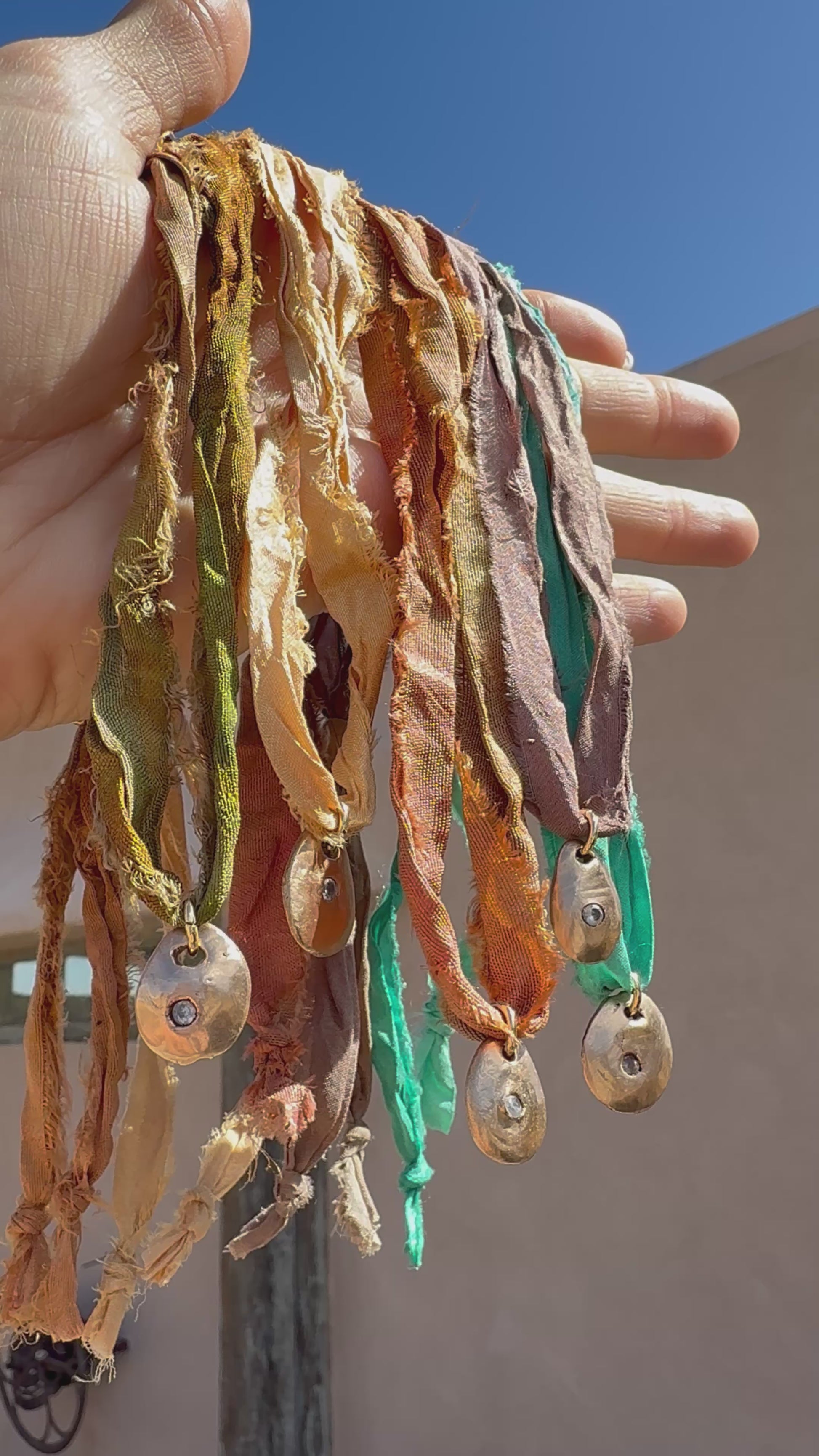 Materials: Sari Ribbon, Bronze, assorted gemstones